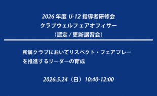 【募集】5/24_U-12 指導者研修会(クラブウェルフェアオフィサー認定/更新講習会)